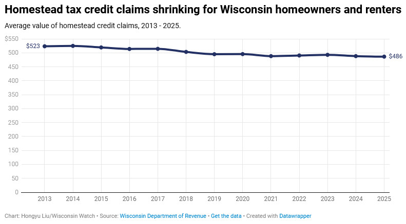 She’s not alone. Statewide homestead credit claims dropped from an average of $523 per recipient in 2013 to $486 in 2025, with thousands fewer claimants as fewer people remained eligible.